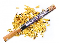Vystřelovací a bouchací konfety ve zlaté barvě jsou vtipnou dekorací na narozeninovou párty nebo svatbu.