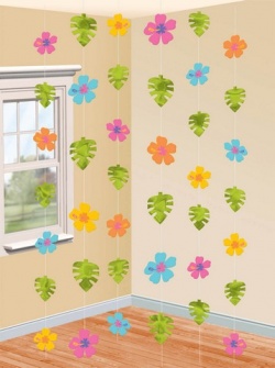 Závěsné dekorace s květinovým vzorem se hodí jako výzdoba na havajskou, exotickou nebo zahradní párty či na narozeninové oslavy.