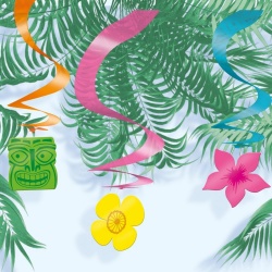 Ozdobné závěsné spirály s havajskými motivy ideální na exotický večírek, párty u bazénu nebo narozeninovou oslavu.