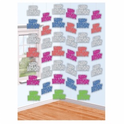 Závěsné dekorace s nápisem Happy Birthday ideální na jakoukoliv oslavu narozenin.