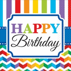 Papírové party ubrousky s nápisem Happy Birthday oživí každou oslavu narozenin.