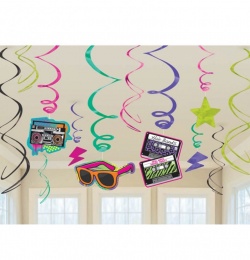 Dekorativní závěsné spirály s motivem 80. let ideální na tématickou oslavu nebo večírek.¨