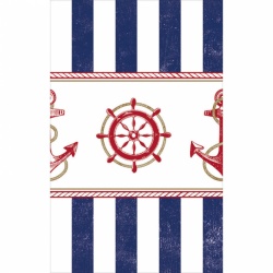 Party ubrus s kotvou, kormidlem a námořnickými pruhy ideální na oslavu v námořnickém stylu nebo party na lodi.