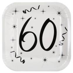 Čtvercový talířek s číslem 60, balení deseti kusů, průměr 23cm.