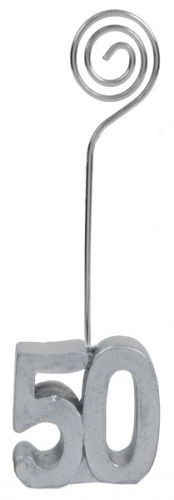 Stříbrná jmenovka s číslovkou 50. Super vychytávka pro narozeninovou párty, balení obsahuje 2 kusy.