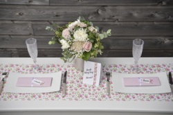 Stolní běžec s růžičkami o rozměrech  5 m x 30 cm. To pravé pro narozeninovou, svatební nebo zahradní párty.