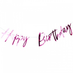 Velká růžová girlanda na zavěšení s nápisem Happy Birthday, to pravé pro oživení holčičí narozeninové oslavy.