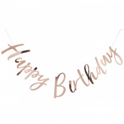 Pojmy spojené s tímto produktem: girlanda, závěsná, happy birthday, narozeniny, vše nejlepšé, dekorace, doplněk, zlato-růžová, párty, oslava