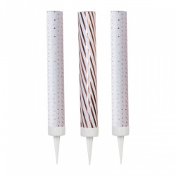 Sada tří bílých fontánových svíček se zlato-růžovým vzorem o výšce 16 cm. Nádherné dozdobení dortu oslavence.