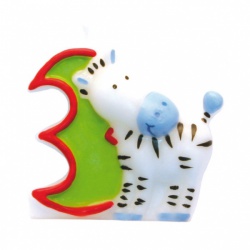 Svíčka s obrázkem zvířátka ze safari a číslovkou na dětskou narozeninovou oslavu ušetří nervy se zapalováním několika svíček i místo na dortu!