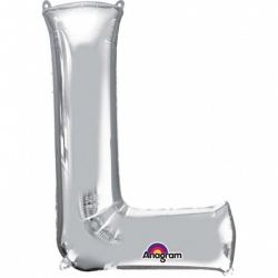 Velký fóliový balónek supershape ve tvaru písmene L ve stříbrné barvě, díky kterému můžete poskládat jméno oslavence na jeho narozeninové párty. Velikost balónku je 58 x 81 cm