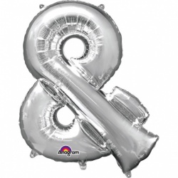 Fóliový balónek supershape ve tvaru znaku & ve stříbrné barvě, který je ideální pro výzdobu narozeninové párty. Velikost balónku je 76 x 96 cm.