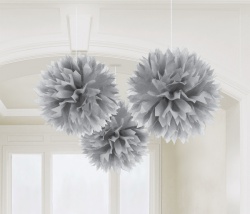 3 kusy stříbrných, nadýchaných dekorativních koulí o průměru 40,6 cm. Vkusná dekorace na oslavy.