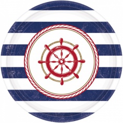 Sada 8 kusů papírových talířků s námořnickou tématikou o průměru 17,7 cm.