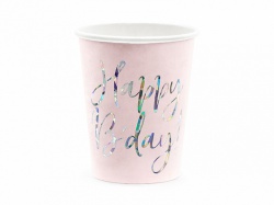 Růžové kelímky Happy Birthday