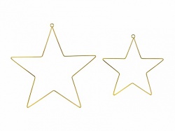 Sada 2 kusů zlatých kovových dekoračních hvězdiček. Průměr hvězd je 20 a 28 cm.