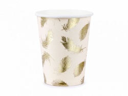 Sada 6-ti kusů papírových kelímků se zlatými pírky. Objem kelímku je 220 ml.