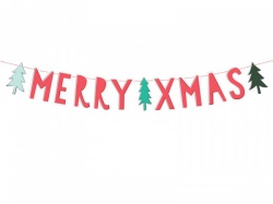 Červená vánoční girlanda s nápisem Merry Xmas. Rozměry 12 x 120 cm.
