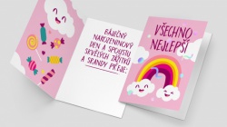 Duha - narozeninové přáníčko PartyWorld, dodávané včetně bílé obálky s textem : " Báječný narozeninový den a spoustu skvělých zážitků a srandy přeje : "