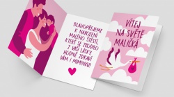 Přáníčko - Vítej na světě maličká s textem: Blahopřejeme k narození malého štěstí, které se zrodilo z Vaší lásky.