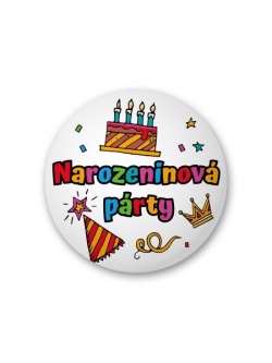 Placka s nápisem Narozeninová párty